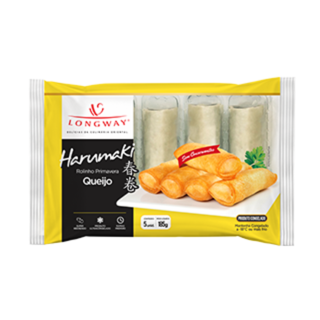 Harumaki, conhecido no Brasil como rolinho primavera, é uma iguaria de origem chinesa que conquistou o paladar dos japoneses e, mais tarde dos brasileiros. O Harumaki Queijo da Longway é produzido cuidadosamente por um moderno processo industrial automatizado, utilizando-se de matérias primas selecionadas, traduzindo-se assim na mais alta qualidade e segurança, dentro das rígidas normas estabelecidas pela Anvisa. Pode ser preparado no air fryer, frito ou assado.